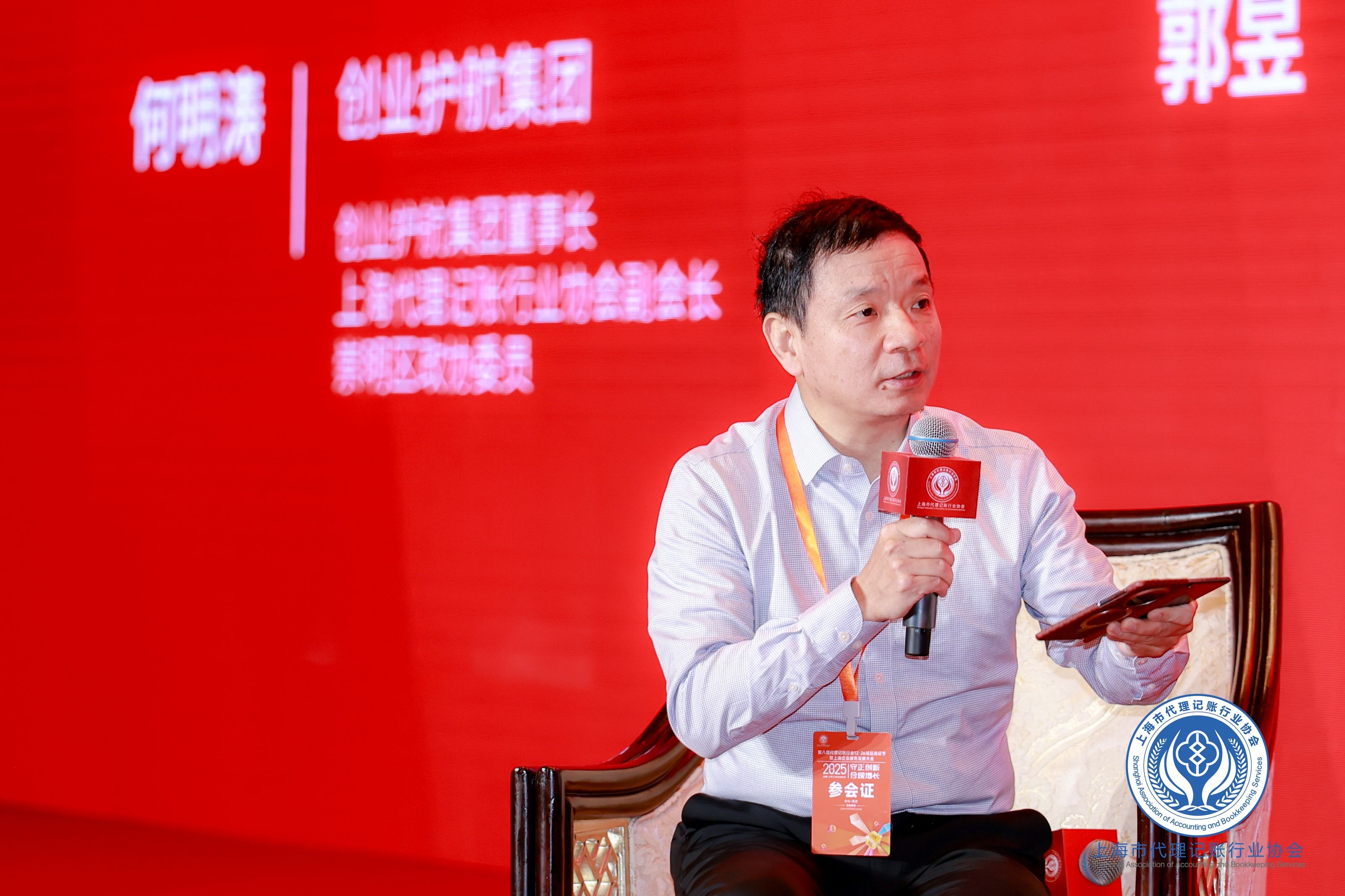 2025年12月26日,“诚信亮证节”暨上海企业服务发展大会在浦东嘉里大酒店成功举办,何明涛作为行业副会长及特邀嘉宾出席会议;其中AI时代与财税服务圆桌论坛由何明涛主持,汇聚软件、教育、学术及财税领域资深专家,共同探讨AI在财税行业的创新应用与实践前景。现场思想碰撞热烈,与会观众纷纷表示收获颇丰。
